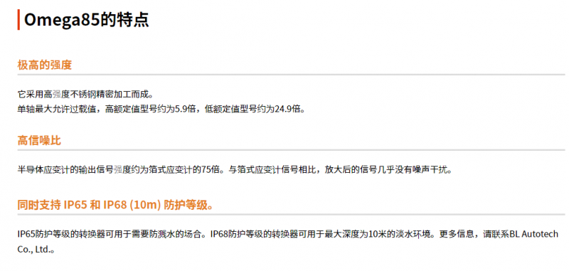 BL 力矩传感器Omega85系列